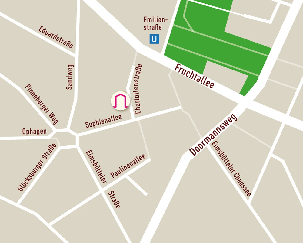 Mit der Linie U2 fahren Sie bis zum U-Bahnhof ‚Emilienstraße‘. Der Fußweg von der Haltestelle zum Tagestreff dauert ca. 10 Minuten.